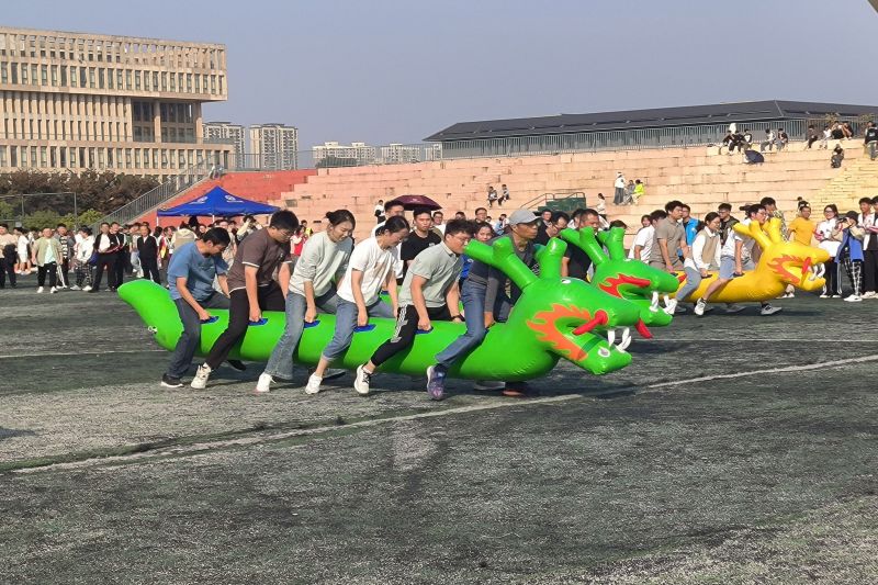 运动会开幕式中学院教职工在激昂的音乐声中,整齐划一地走过操场,他们的步伐坚定,面庞洋溢着自信和期待。随后,各项比赛项目陆续展开,包括个人赛和团体赛,每一项比赛都充满了激烈的竞争和欢声笑语。