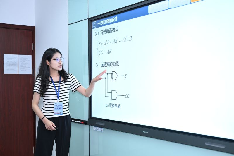 阮佩老师则以其深厚的理论功底和清晰的讲授逻辑,对《数字电子技术基础》的理论内容进行了深入浅出的剖析。她将复杂的电子世界化繁为简,用通俗易懂的语言和生动形象的比喻,将抽象的概念转化为具体的形象,使学生能够轻松理解并掌握知识点。她的讲解思路清晰、条理分明,让学生在学习的过程中豁然开朗,对数字电子技术有了更深刻的认识。最终,阮佩老师荣获二等奖。